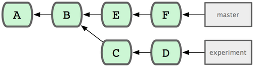 С другой стороны, если вы хотите получить обратное — все коммиты в master, которых нет в experiment, можно переставить имена веток. Запись experiment..master покажет всё, что есть в master, но недостижимо из experiment: